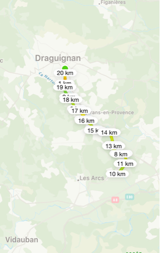 départ du début de la voie vert de Draguignan jusqu’au arcs puis retour par le même chemin.
